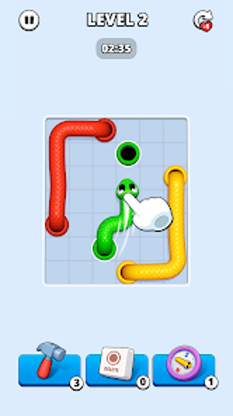 Snake Away - Hole Puzzle ist ein unterhaltsames und schnelles Puzzlespiel für Android, in dem die Spieler bunte Schlangen zu ihren passenden Löchern führen müssen. Die Steuerung erfolgt durch einfaches Ziehen der Schlangen auf dem Spielfeld, wobei darauf geachtet werden muss, sich nicht selbst zu kreuzen oder stecken zu bleiben. Jedes Level ist zeitlich begrenzt, was schnelle Entscheidungen und strategisches Denken erfordert.